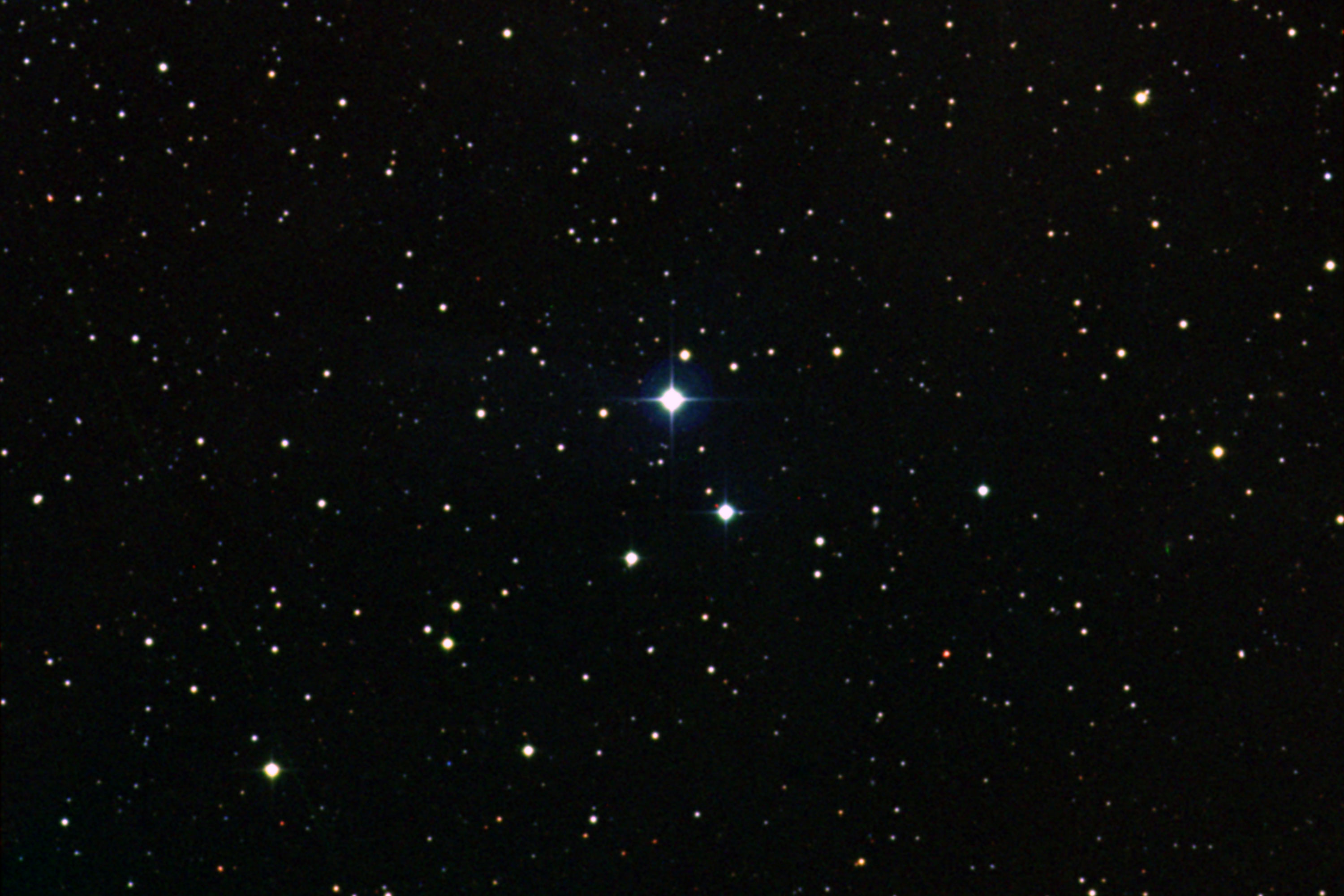 Unlabeled version - An image of the young star HD 283572 and its surrounding field using optical and infrared data from the Digitized Sky Survey (DSS). HD 283572 is the bright star near the center of the image. The image is 20 arcminutes across, equivalent to 2.3 light-years at HD 283572's distance of 400 light-years.