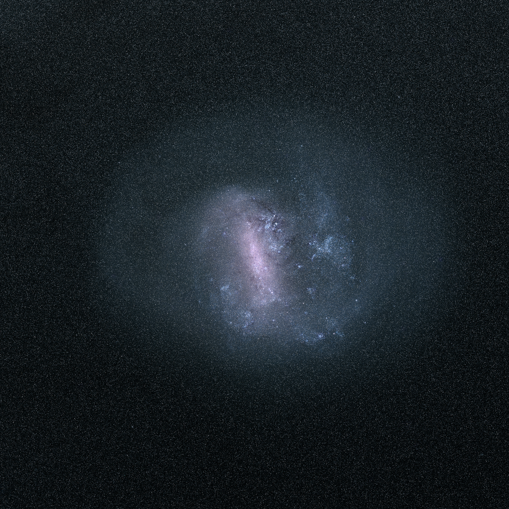 This is an image of the Large Magellanic Cloud (LMC), one of the nearest galaxies to our Milky Way, as viewed by ESA’s Gaia satellite using information from the mission’s second data release. This view has been compiled by mapping the total amount of radiation detected by Gaia in each pixel, combined with measurements of the radiation taken through different filters on the spacecraft to generate color information. Astronomers have announced the discovery strong evidence for a supermassive black hole in the LMC, which would be the closest to Earth outside of the Milky Way galaxy.