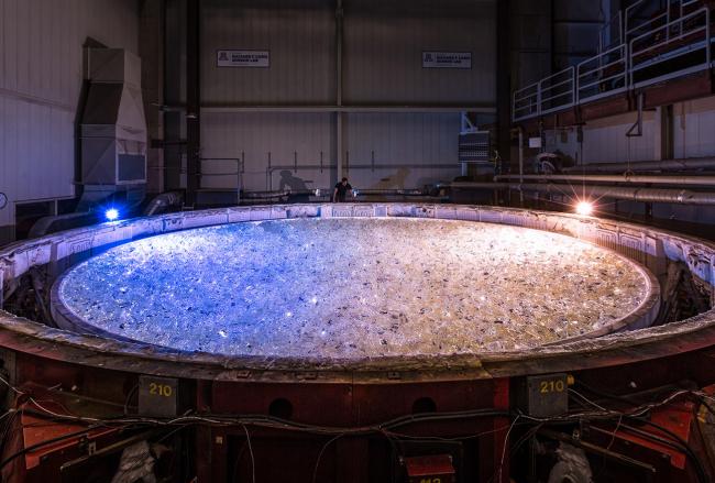 Each of GMT's light-weighted mirrors is a marvel of engineering. The mirrors begin as pristine blocks of custom manufactured low-expansion E6 glass from the Ohara Corporation of Japan. Precisely 17,481 kg of these glass blocks have been placed by hand into a custom-built furnace pre-loaded with a hexagonal mold. At the peak of the lengthy casting process, in which the giant furnace spins at up to five revolutions per minute, the glass is heated to 1165°C (2129°F) for about four hours until it liquefies and flows into the mold. The casting process continues as the glass is carefully cooled for three months while the furnace spins at a slower rate. The glass then undergoes an extended period of shaping and polishing. The result of this high-precision process is a mirror that is polished to an accuracy of one twentieth of a wavelength of light, or less than one thousandth of the width of a human hair.